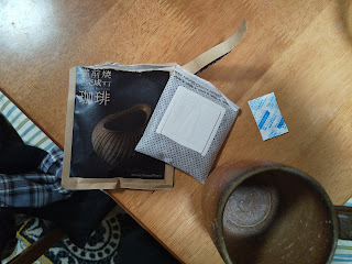 とりあえず珈琲の袋と備前焼